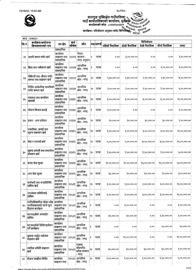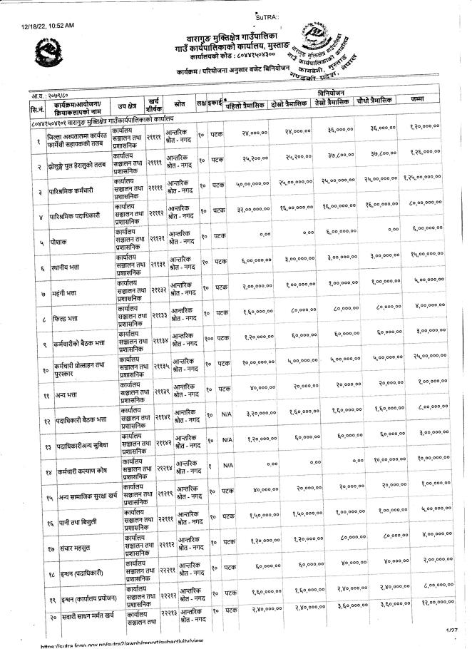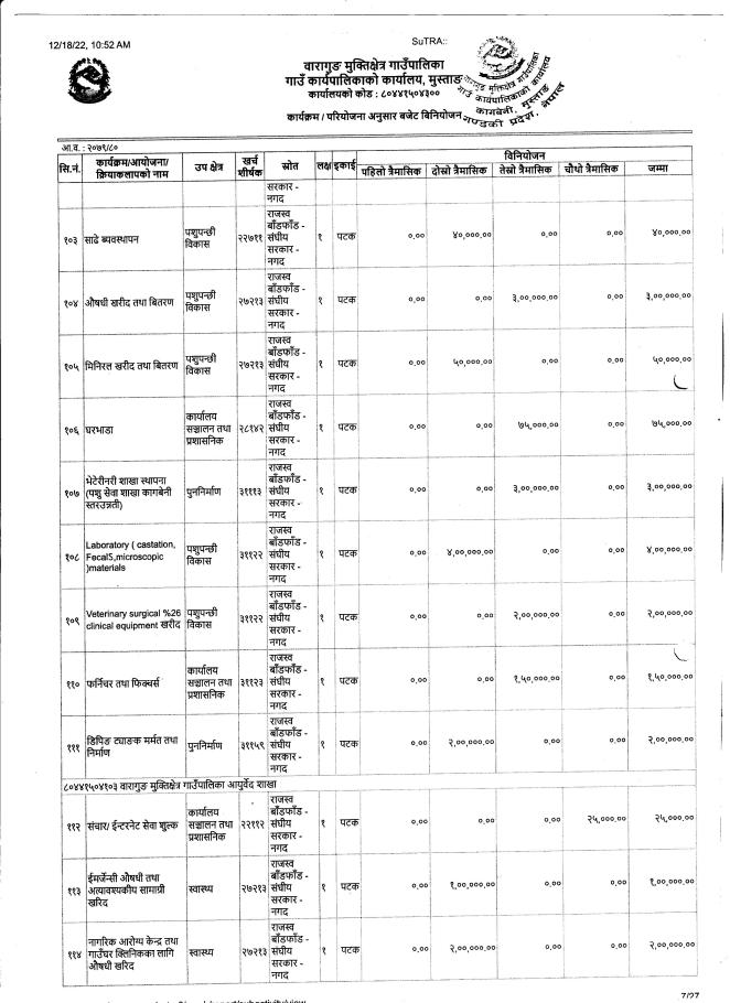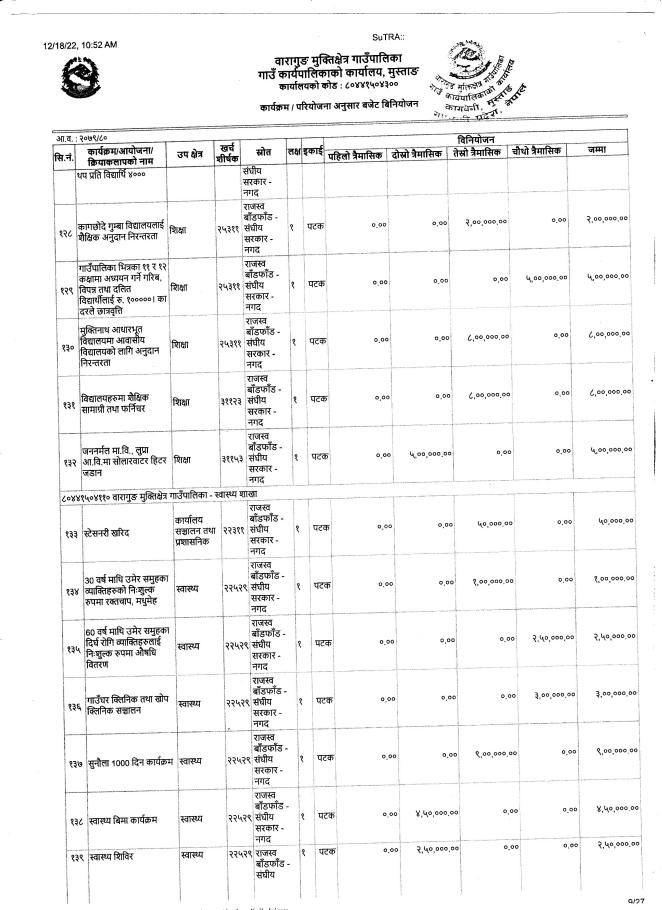आ.व.२०७९/०८० को बजेट तथा कार्यक्रम