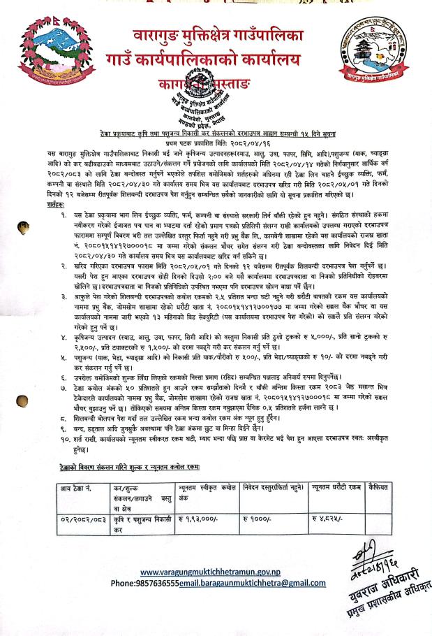 कृषि तथा पशुजन्य निकासी कर सम्वन्धी बोलपत्र