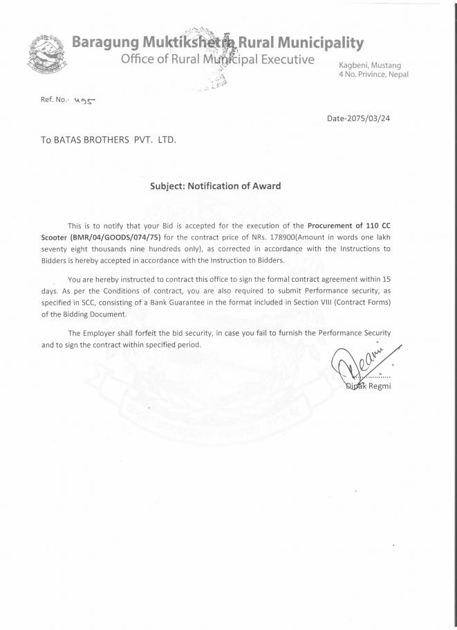 सवारी खरिद सम्झौताको लागि उपस्थित हुने बारेको सूचना