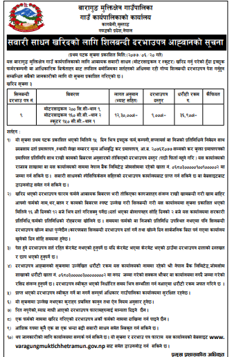 सवारी साधन(मोटरसाइकल तथा स्कुटर) खरिदको लागि शिलबन्दी दरभाउपत्र आह्वानको सूचना!!!